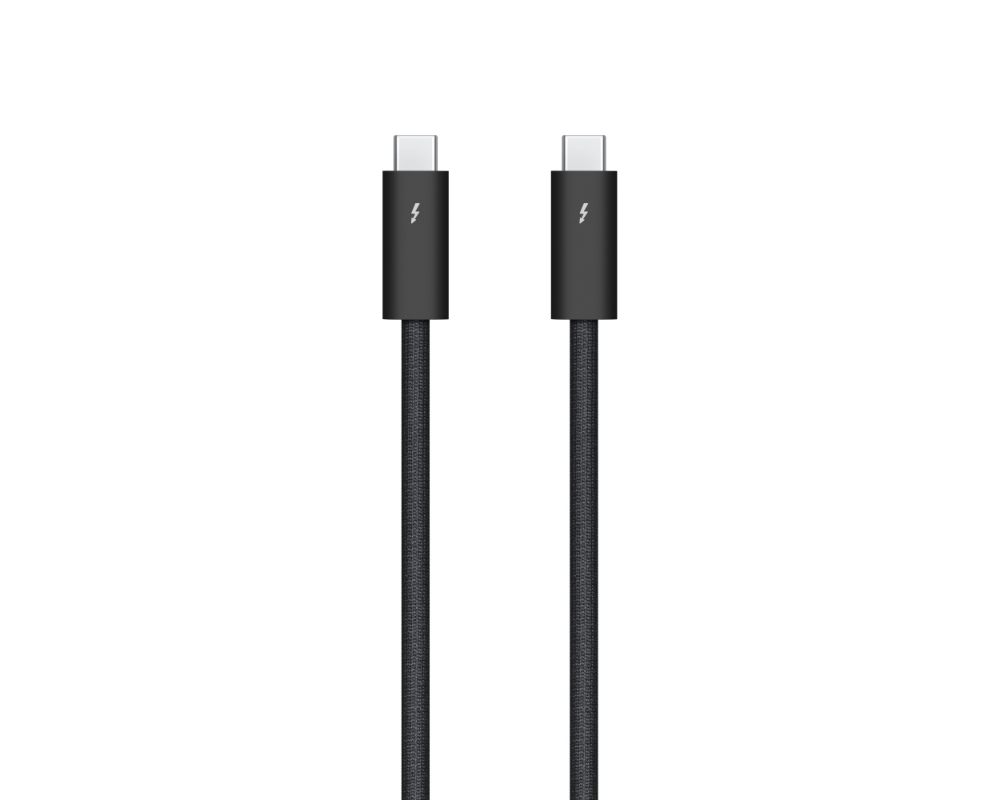 Apple Thunderbolt 4 Pro  MWP02AM/A  cuenta con un diseño trenzado negro que se enrolla sin enredarse, este cable de 1,8 metros admite transferencia de datos Thunderbolt 3, Thunderbolt 4 y USB 4 de hasta 40 Gb/s, transferencia de datos USB 3 de hasta 10 Gb/s, salida de vídeo DisplayPort (HBR3), y cargando hasta 100W. Utilice este cable para conectar una Mac con puertos Thunderbolt 3 o 4 (USB-C) a pantallas y dispositivos Thunderbolt (USB-C) y USB como Studio Display, Pro Display XDR, bases y discos duros. También puedes utilizar este cable para conectar el iPhone 15 Pro a Mac.