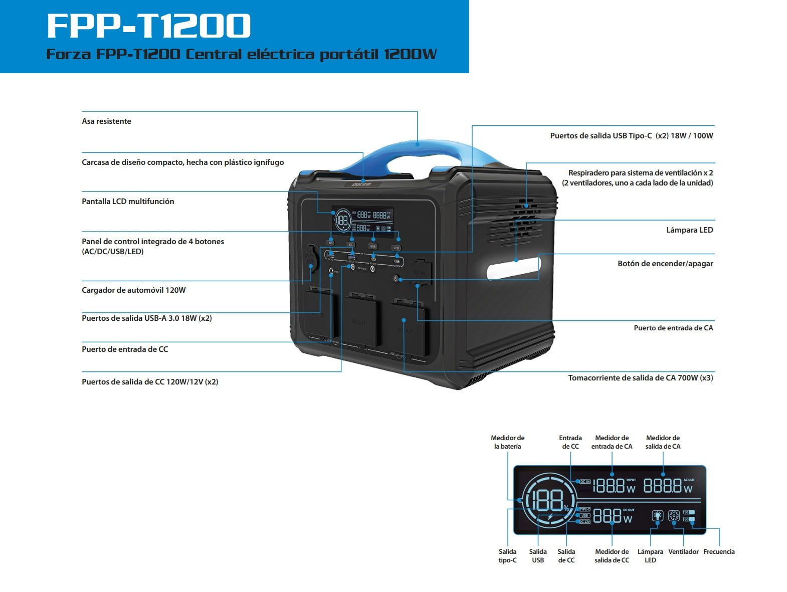 - Capacidad de salida 1200W