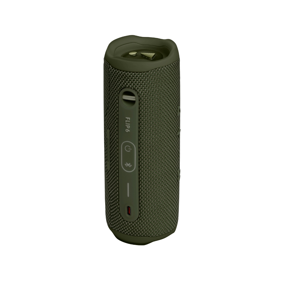 JBL Flip 6 JBLFLIP6GRENAM altavoz portátil inalámbrico Bluetooth impermeable. Con solo 18 cm de largo, puedes llevarlo fácilmente en tu mochila o bolso. Tiene una duración de hasta 12 horas con una sola carga, y su diseño resistente al agua y al polvo te permite usarlo prácticamente en cualquier lugar, incluso en la piscina o la playa.