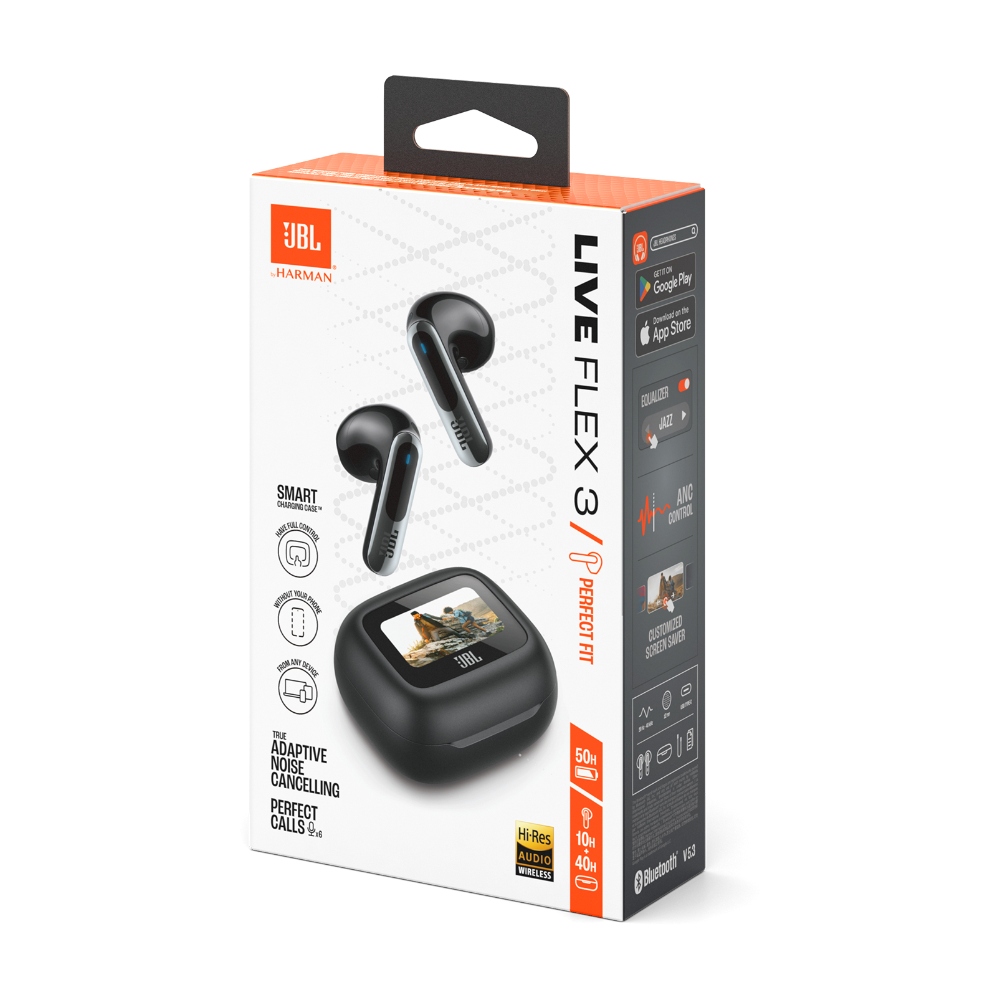 JBL JBLLIVEFLEX3BLK auriculares True Wireless con cancelación de ruido con diseño Open Stick y Smart Charging Case. Ajusta el volumen y el ecualizador, controla tu música, responde llamadas, consulta mensajes… Incluso puedes personalizar el salvapantallas con tus fotos favoritas.