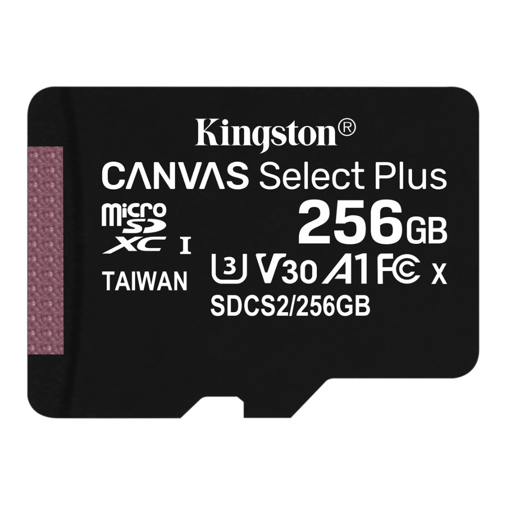 Kingston Canvas SDCS2/256GB diseñada para dispositivos Android y fabricada con la especificación de rendimiento A1, la tarjeta de memoria microSDXC Canvas Select Plus UHS-I de 256 GB con adaptador SD de Kingston ofrece una velocidad y una capacidad mejoradas para cargar aplicaciones más rápidamente, así como para capturar imágenes fijas en formato RAW y JPEG y videos Full HD 1080p. Con una capacidad de almacenamiento de hasta 256 GB, esta Canvas Select Plus ofrece velocidades de lectura de hasta 100 MB/s y velocidades de escritura de hasta 85 MB/s. Gracias a su clasificación de velocidad V30, las velocidades de escritura no bajarán de los 30 MB/s.