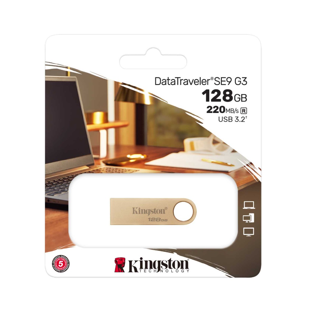Kingston DTSE9G3/128GB disfrute de una combinación de elegancia y funcionalidad con la unidad Flash USB 3.2 Gen 1 DataTraveler SE9 G3, ideal para almacenar y compartir datos. Redescubra su diseño atemporal y galardonado, ahora mejorado con velocidades de alto rendimiento de hasta 220MB/s de lectura y 100MB/s de escritura, que proporcionan transferencias de datos rápidas y fluidas en dispositivos host Tipo A.