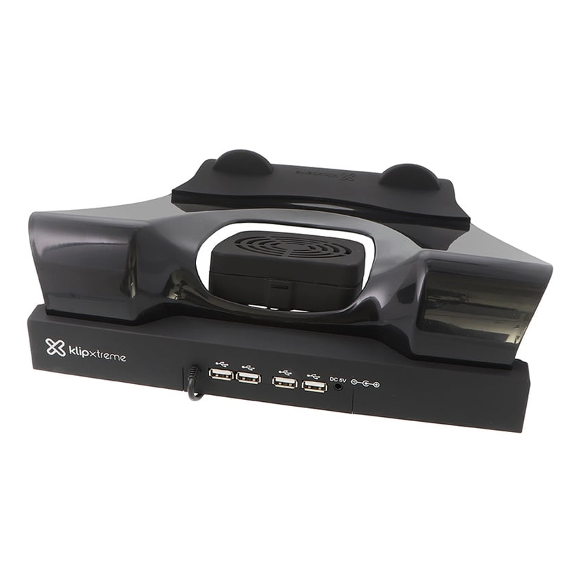 Klip Xtreme Cooling station, Soporte para laptop hasta 17″ con Hub USB de 4 puertos y ventilador de refrigeración, Negro · KNS-110B