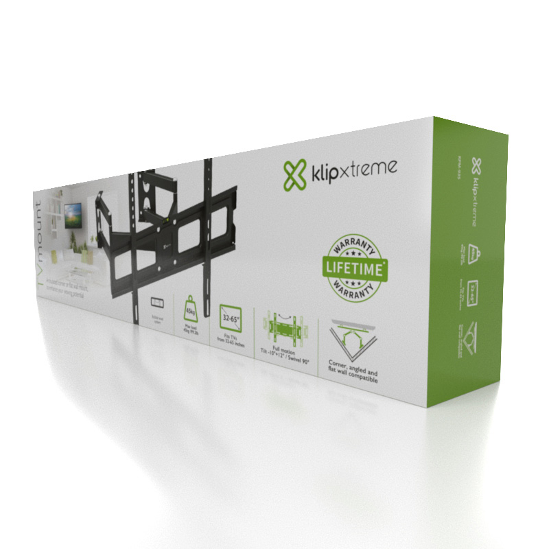 Klip Xtreme KPM-935 este soporte articulado constituye una solución versátil para montar tu televisor en cualquier rincón de la habitación ocupando el mínimo de espacio. Los dos brazos con articulaciones independientes se adaptan dinámicamente a cualquier superficie, desde paredes planas, en ángulo y esquinas. Ideal para centros de entretenimiento y sistemas de cine en el hogar, su gran flexibilidad te permite ubicar el televisor en la posición y ángulo de visualización óptimos. Su sólida estructura de acero lo convierte en uno de los soportes más resistentes en su tipo, con una capacidad de carga de hasta 45kg.