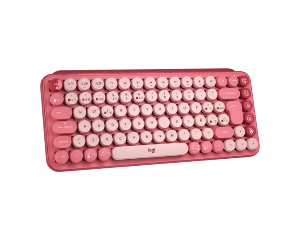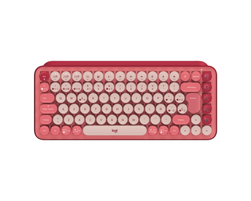 Logitech POP Keys, Teclado Mecánico Inalámbrico, Bluetooth, USB Logi Bolt, Español, Heartbreaker Rosa · 920-010715