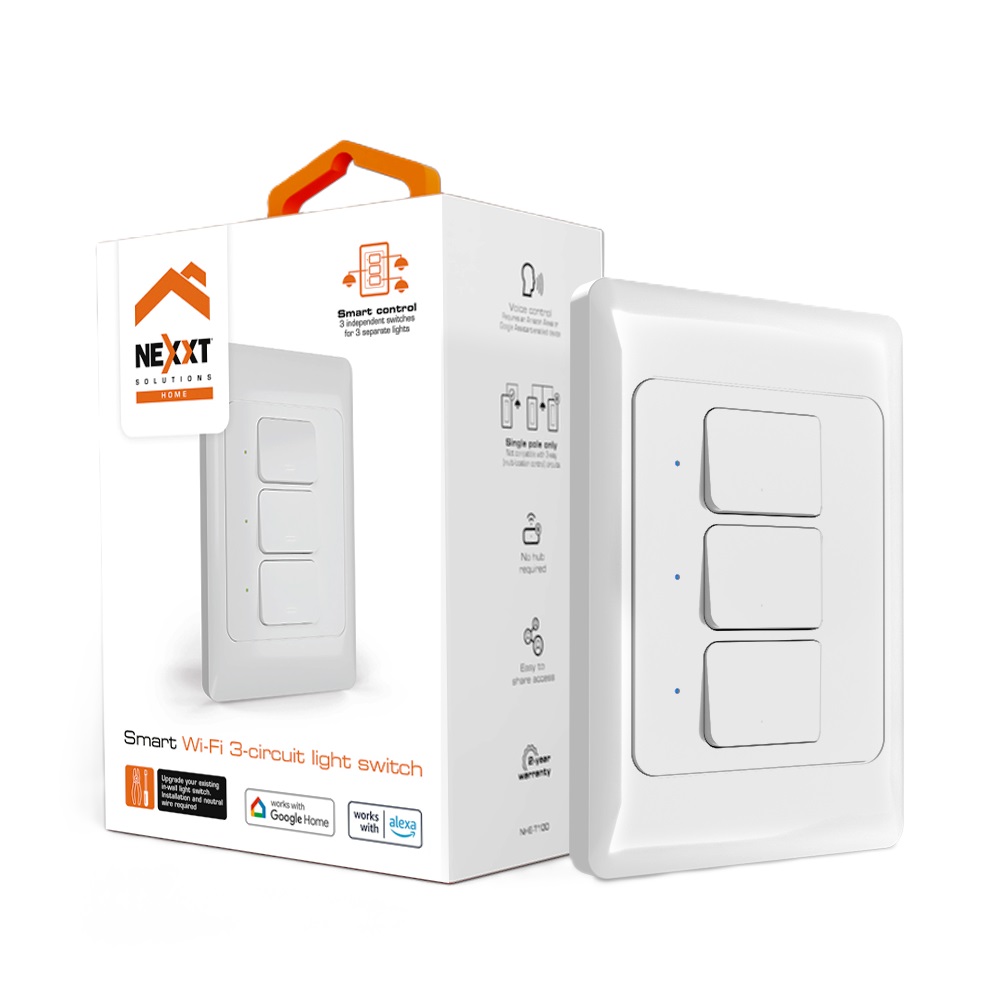 Nexxt Solutions Home NHE-T100 diseñado para actualizar los controles de luz convencionales de un solo polo con nuestro Interruptor Wi-Fi inteligente de 3 circuitos permite instalarlo con toda facilidad e integrarlo a tu red inalámbrica existente, no necesitas un concentrador.