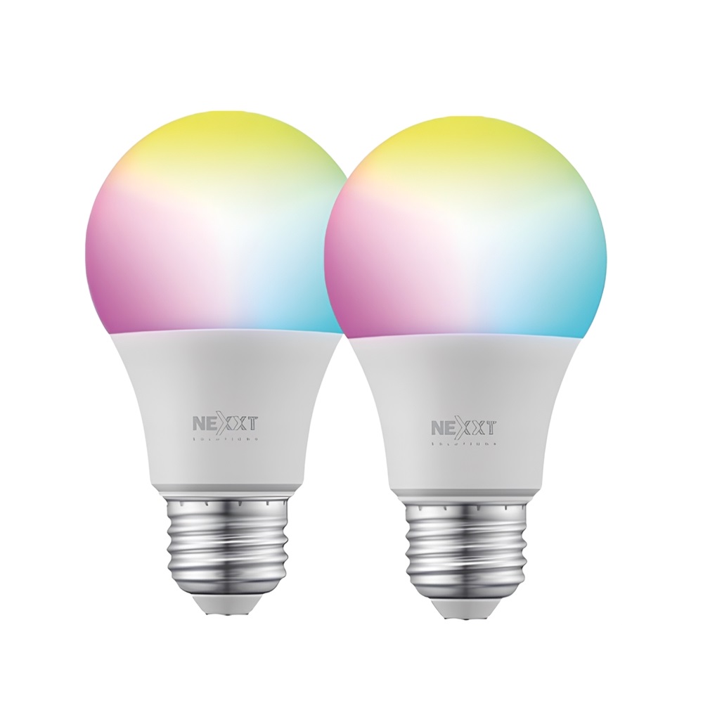 Nexxt Home, Paquete de 2 Bombillos LED RGB inteligente Wi-Fi, Multicolor con tecnología Matter, 800 Lumen, 110V · NHB-C110M 2PK