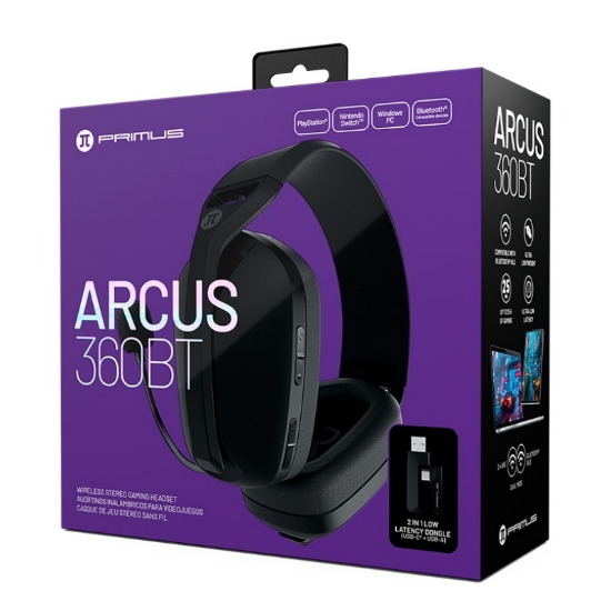 Primus PBH-360BK Audífonos inalámbricos estéreo para video juegos con conectividad Bluetooth® o Dongle USB 2.4Ghz. Diseñado para jugadores de elite que exigen nada menos que lo mejor, el ARCUS360BT ofrece un audio impresionante que cambia la forma en la que juegas para siempre.