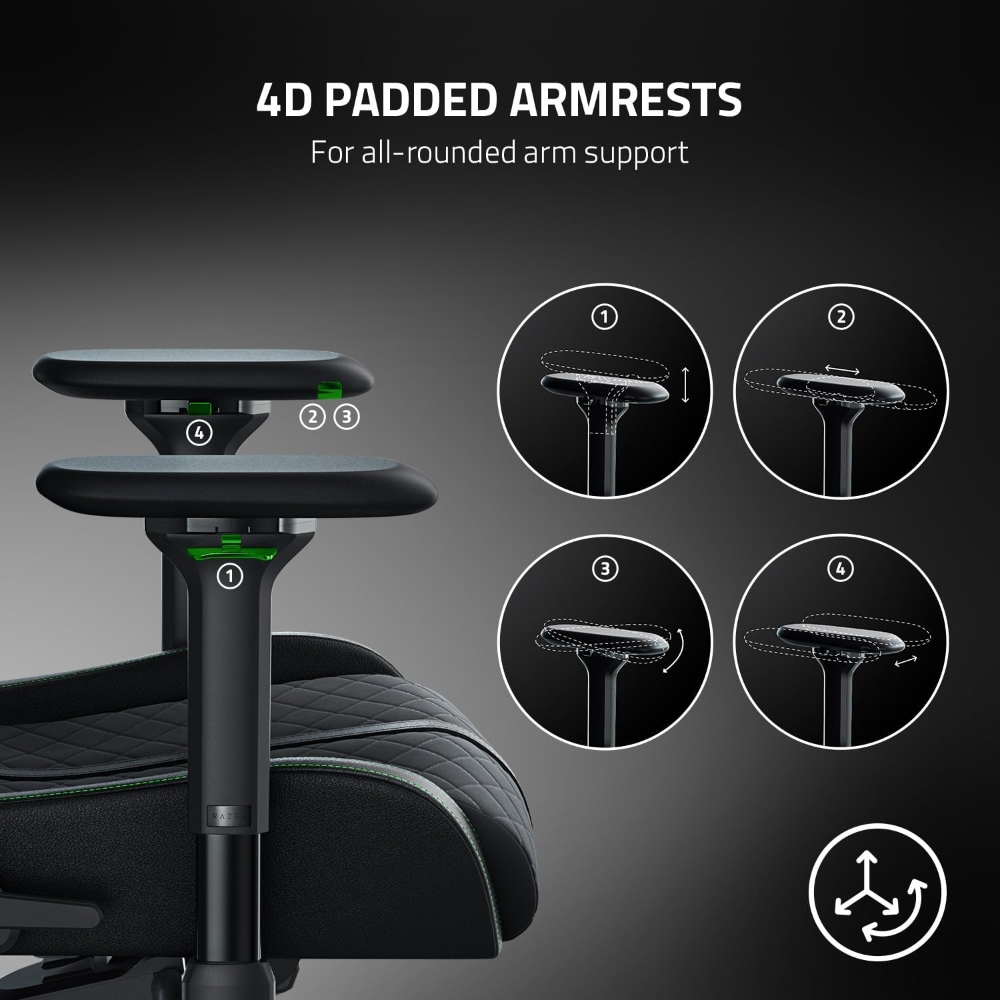 Razer Enki RZ38-03720400-R3U1 diseñada para dar comodidad todo el día, gracias a una combinación de sus exclusivos arcos de hombro extendidos de 110° y una base de asiento ultra ancha de 21”, la silla para juegos Razer Enki garantiza una distribución óptima del peso para una comodidad duradera durante maratones de juegos.