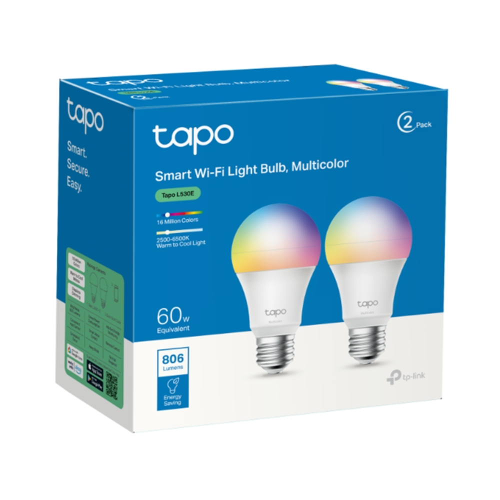 TP-Link Tapo L530E(2-pack) es una Bombilla inteligente Wi-Fi, multicolor con una potencia de 806 lúmenes, estas bombillas ofrecen un rango de temperatura de color de 2500 a 6500 Kelvin y un rango de atenuación del 1 % al 100 %. Su vida útil de 15 000 horas garantiza una larga vida útil. La compatibilidad con Amazon Alexa y el Asistente de Google permite comandos de voz sin interrupciones.