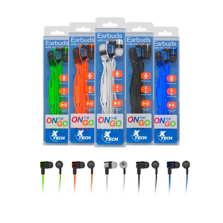 Xtech On-The-Go XTG-235 son unos audífonos con micrófono y botón de control integrado para reproducir y pausar la música de tamaño super liviano con cordón plano que evita la formación de nudos.